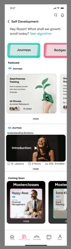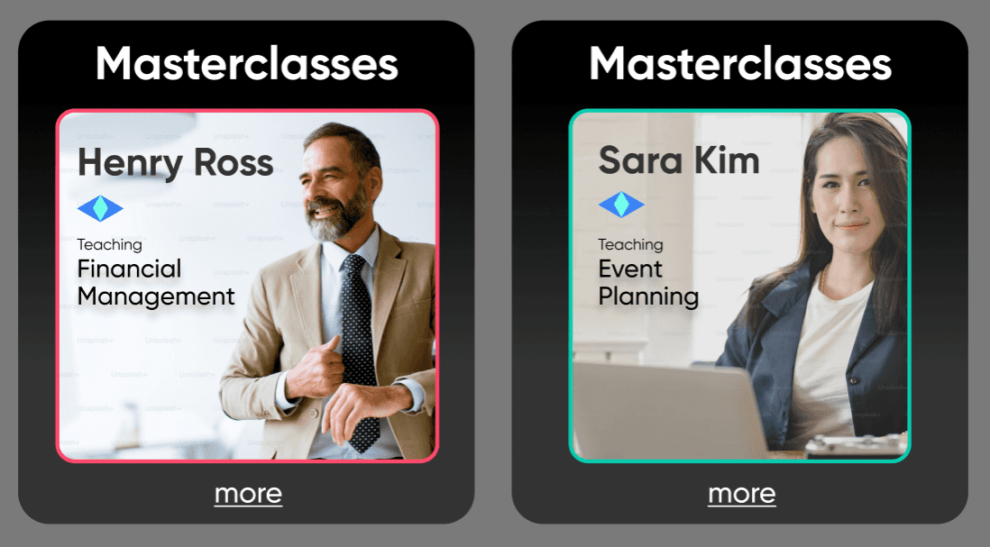 The client disclosed that masterclasses would later be added, so tiles were created to represent content coming soon to that section.