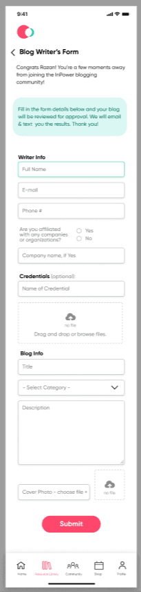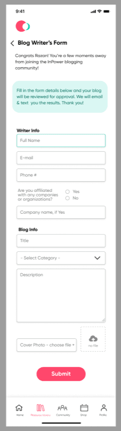 Form fields were created for users who routinely engage in blogging content and have an interest in writing blogs for the platform.