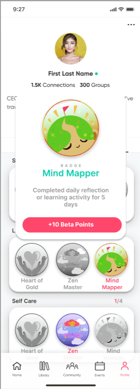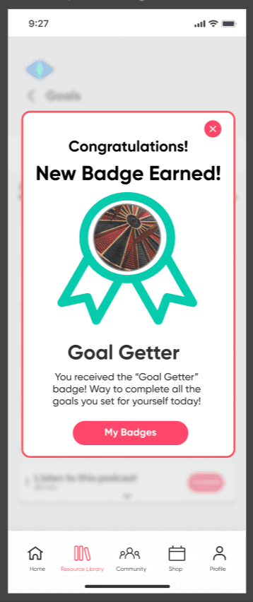 User achieves the “Goal Getter” badge for completing all the goals they have set for themselves for the day and promotes further user engagement with setting goals and attaining different badges.