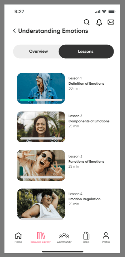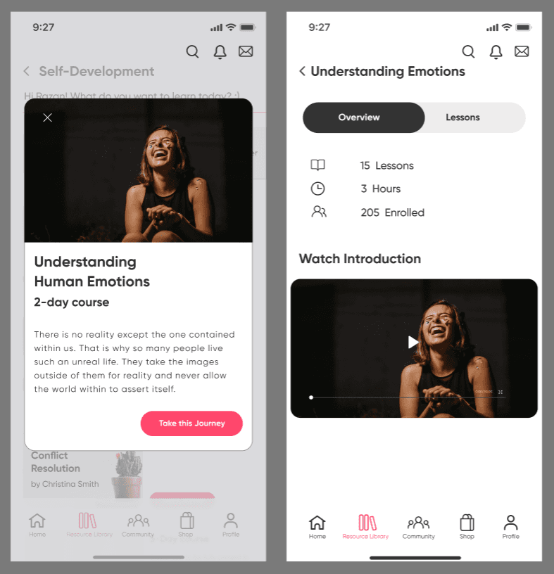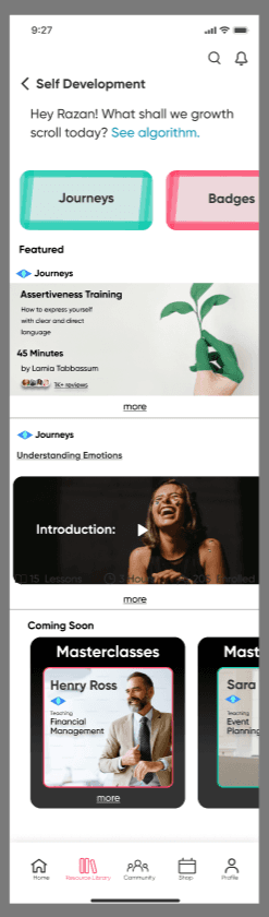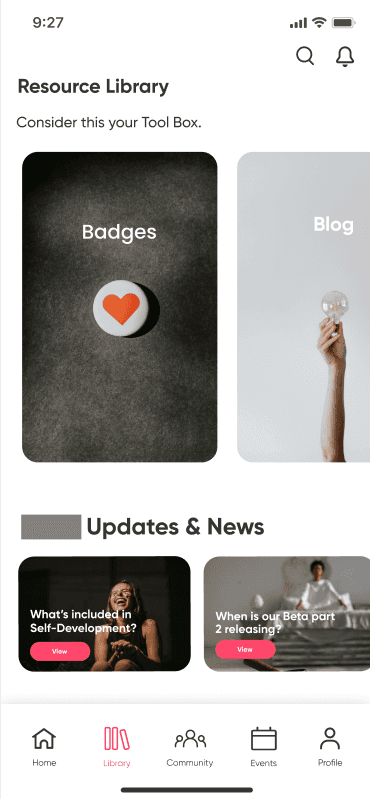 The Self-Development subsection of the Resource Library lacked content providing foundational structure for user interaction in the prototype.