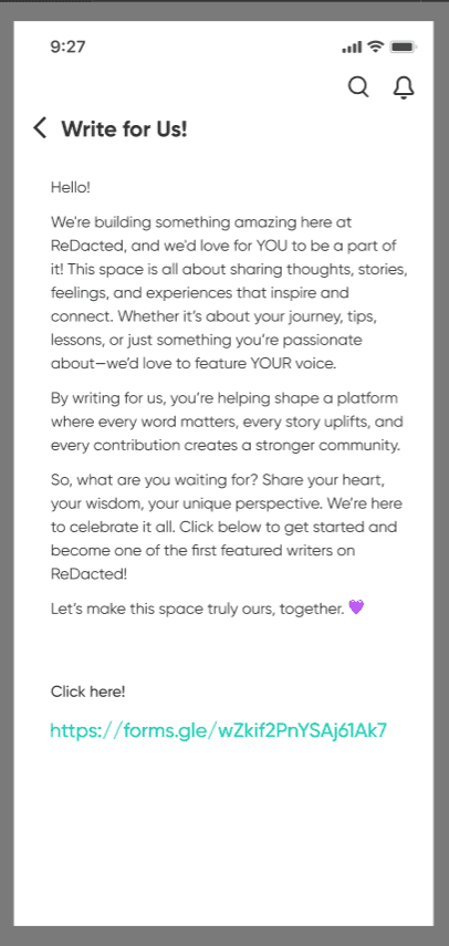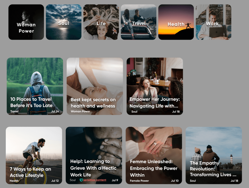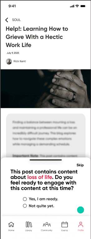 Blog content is blurred out and text copy is only made visible if users indicate they are ready to engage with the content.