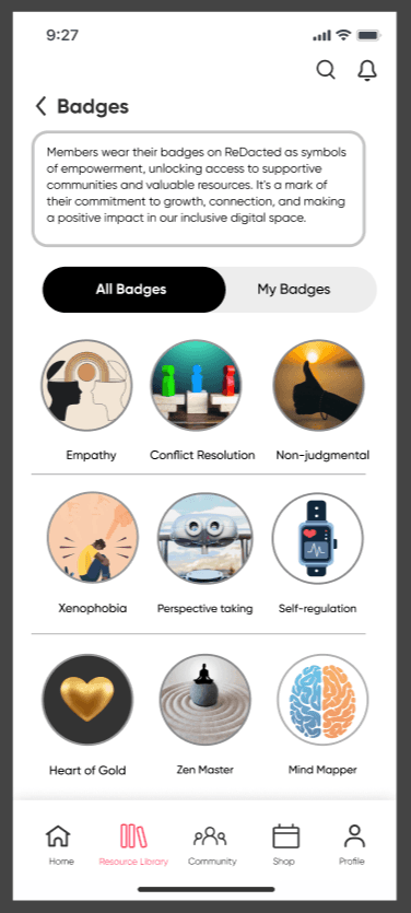 All badge images were changed to compromise between too playful & too serious, resulting in a badges that better matched the platform tone.