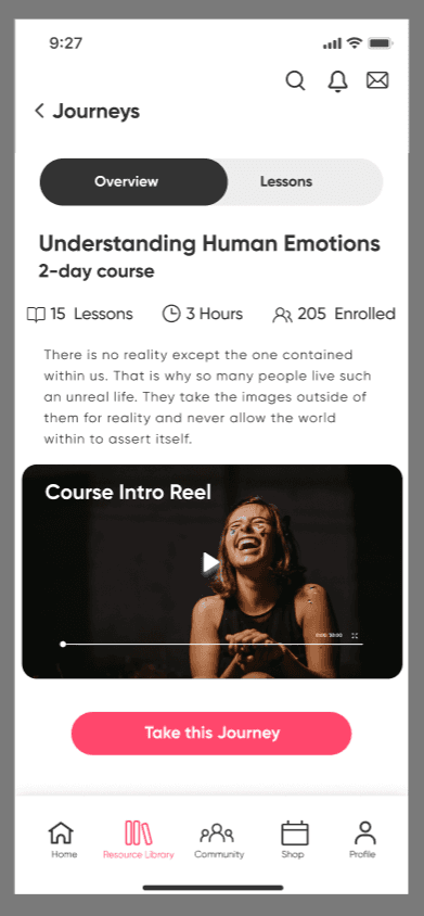 Original screens 1 & 2 showed disjointed navigation to the course enrollment CTA using multiple screens.