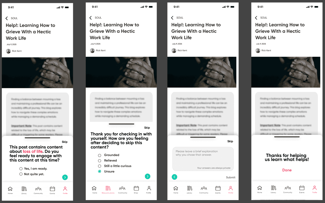 We were also tasked to develop a framework for embedding IRB checkpoints into natural user interactions, allowing the platform to gather meaningful feedback without disrupting user flow.